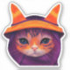 Sticker Orange Chat Violet Sorcière Casquette Imaginaire H