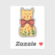 This custom cut sticker features an orange cat wearing red bow and decorated with tiny flower on his belly.
