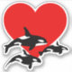 Autocollant d'épaulard cool Orca. Orca baleines nageant au-dessus d'un grand coeur d'amour lu. J'aime les orques. Cadeau amoureux de baleines orques.