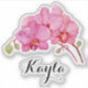 Autocollants vinyle personnalisés avec fleurs d'orchidées roses et votre nom.