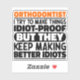Drôle Orthodontiste Dit "Orthodontiste J'Essaie De Faire Des Choses Idiot Preuve Mais Ils Continuent À Faire De Meilleurs Idiots". Prenez ce dessin Orthodontiste amusant comme un cadeau amusant pour une maman, un papa ou un ami génial.