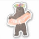 Montrez votre amour pour la Californie avec cet autocollant magnifiquement conçu avec une illustration d'ours d'aquarelle douce, portant une couronne fleurie colorée et tenant une carte silhouette de l'état de Californie.