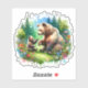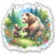 Un ours maman joue avec son bébé ourson dehors dans un champ d'herbe et de fleurs avec un arrière - plan de pin. Aquarelle style art.