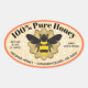 Image de Queen Bee dans le médaillon central d'un autocollant coloré, entouré d'un motif arrière - plan géométrique. Personnalisez le texte avec le type de miel, le nom commercial, l'adresse et le poids net de votre produit. Ces autocollants s'adaptent à de grandes pots de maçon de la pinte et de la demi-gallon, à des contenants en verre rond et hexagonal.