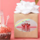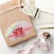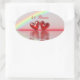 stickers ovale avec mon oeuvre originale d'un arc-en-ciel et deux coeurs couleur rubis flottant sur l'eau. Le texte personnalisable dit "40 ans".