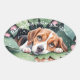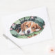 Sticker Ovale Beagle Whimsical Rainy Day Feuilles verts