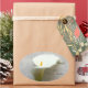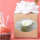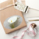 Ce joli lys calla blanc sur un arrière - plan de script apparaît sur un autocollant que vous pouvez utiliser sur les sacs de faveur de mariage, jarres de confiture, bougies, ou demoiselle d'honneur et cadeaux de filles de fleurs.