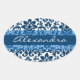 Sticker Ovale Calligraphie damassé bleu art personnalisable