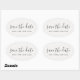 Customisez cet autocollant ovale simple et moderne avec les mots "sauver la date" écrit en belle calligraphie. Ajoutez vos noms et votre date de mariage pour compléter ♥