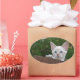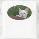 Sticker ovale Savannah blanc chat. Arrière - plan prêt pour vous à ajouter vos propres images et texte.