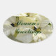 Un autocollant ovale avec une image de belles poinsettias blanches avec un sentiment de vacances personnalisable. Voir carte de voeux et étiquette correspondants. Voir la collection de l'autocollant de Noël dans la section CARTES DE NOËL ET BALISTES DE VACANCES.