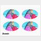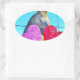 Sticker Ovale Cheval blanc et Brown Valentine Coeurs