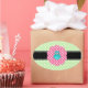 Jolie chouette turquoise/turquoise/aqua avec arrière - plan motif pois vert et blanc avec cercle de pétoncle pois rose et diamants noirs (faux diamants, pas réels) rayés