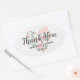 Sticker Ovale Coeur floral rose vif Merci Mariage moderne