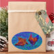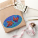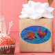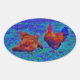 Sticker Ovale Coq et poules arc-en-ciel, bleu électrique