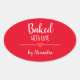 sticker moderne "cuit avec amour" avec une police blanche sur un arrière - plan rouge agrémenté d'un coeur mignon. Customiser du texte.