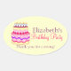 Sticker Ovale Cute Joyeux gâteau d'anniversaire personnalisé