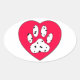 Sticker Ovale Empreinte de patte dalmate dans le coeur rouge
