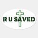 Il s'agit d'un design magnifique avec des lettres militaires qui est écrit "R U SAVED" en noir et vert contour. Il y a une croix verte dans l'arrière - plan des mots. Propriété d'image de Diligent Heart.