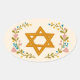 Sticker Ovale Étoile de David Dessin Floral Coutume Juive