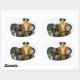 Sticker Ovale Femme avec deux animaux de compagnie léopards sauv