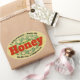 Étiquette de bocal de miel avec un bouquet de trèfle ou de fleurs sauvages attachés dans une couronne, et texte customisé pour le nom de l'apiculteur ou de l'apiculteur, les coordonnées, le poids net et le texte en gras pour le mot "Miel" (ou Miel, Miele, ou Miel dans d'autres langues). Utilisez le texte facultatif pour le type de miel, les qualités du produit (non filtré, ambre foncé), le pays d'origine ou les produits connexes comme le miel à la crème et les bonbons au miel. © dotpattern