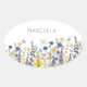 Sticker Ovale Fleurs colorées et papillons Nom personnalisé