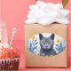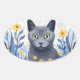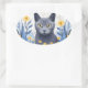 Sticker Ovale Fleurs Jaunes Chat Bleu Russe