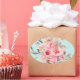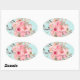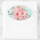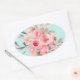 Sticker Ovale Fleurs rose pâle sur bleu clair