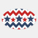 Sticker Ovale Fun Rouge Blanc Bleu Chevron Étoiles et rayures