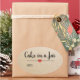 Autocollant ovale moderne "gâteau dans un pot" avec une police de caractères noir sur un arrière - plan en papier kraft agrémenté d'un coeur rouge mignon. Customiser du texte.