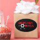 Géologie Ninja - humour scientifique - autocollant noir ovale avec lettrage rouge et étoile lance marteau de pierre.