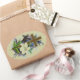 peinture vintage avec une croix chrétienne d'or avec bordure blanche et belle grande fleur blanche et bourgeons avec feuilles verts devant, et un joli spray de fleurs violettes derrière la croix.peinture d'aquarelle vintage en or et vert. aquarelle peinture en or et vert.