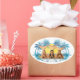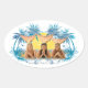 Sticker Ovale Graphique Arbre de palmiers bleus du groupe
