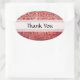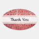 Un ensemble d'autocollants "Merci" ovale rouge avec des hiéroglyphes anciens gravés sur pierre. Les mots "Merci" sont personnalisables !