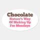 Le chocolat, la façon naturelle de rattraper le lundi. Un bonbon au chocolat mignon, drôle et humoristique qui dit design de citation en caractères rose et marron.