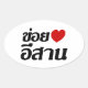 Sticker Ovale I Love Isaan ♦ Écrit en thaï Isan Dialecte ♦