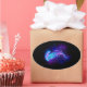 Grande méduse bleue, artistiquement dessinée, brillante, brillante, avec de longues tentacules sur arrière - plan noir avec bioluminescence violette. Méduse brillante.