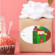 Un petit elfe mignon ou autrement connu comme père Noël aide. Vêtu d'un costume vert vif et d'un casquette. Un grand groupe de cadeaux festifs autour de lui. Customisez comme vous le souhaitez.
