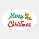 Sticker Ovale Joyeux Noël Flying Reindeer rouge vert script