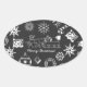 Sticker Ovale Joyeux Noël Père Noël Symboles, noir et blanc