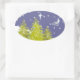 Sticker Ovale Joyeux Noël Pines Lune et étoiles