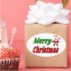 Stickers avec Joyeux Noël en texte vert et rouge 3D et le Père Noël. Les autocollants sont disponibles sous plusieurs formes.