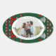 Add a personal and festive touch to your holiday wrapping with this oval photo sticker featuring a cozy green-and-red knitted sweater pattern. Simply replace the placeholder with your favorite family photo and include your family name or greeting around the edge. Perfect for gift tags, packages, or holiday bags, this label combines the warmth of a classic winter sweater motif with the convenience of a customizable sticker. Ideal for marking special presents and making memories even more memorable.