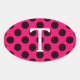 Sticker Ovale Lettre blanche T Monogramme avec Pois
