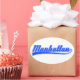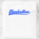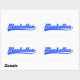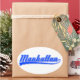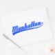 Manhattan, New York City, écrit avec un swash (queue). Polices en blanc et bleu. Conception de texte originale.