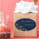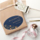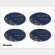 Sticker Ovale Moderne Retro Gold Floral Marine Mariage bleu