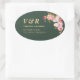 Sticker Ovale Monogramme bleu moderne Mariage vert foncé