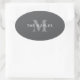 Sticker Ovale Monogramme et nom gris foncé moderne
