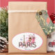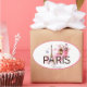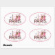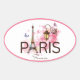 Beau autocollant ovale avec les mots Paris, France avec le "A" à Paris intelligemment fait de la Tour Eiffel. Vous y trouverez également une belle lampe vintage, des papillons et des fleurs.